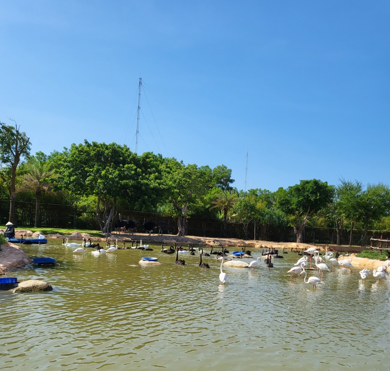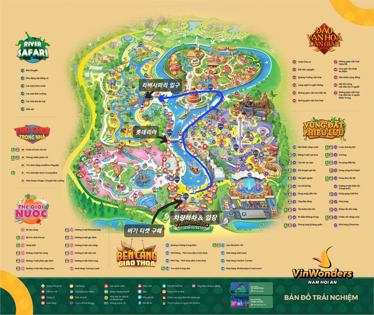버기카를 몰면 파란 길을 따라 빛의 속도로 달린다. 출발할 때(14:30) 기다리지 않고 바로 탔습니다. 보트를 타고 많은 동물들을 가까이에서 체험할 수 있습니다. 가이드는 베트남어로 설명했지만 동물 이름도 한국어로 알려주었습니다.