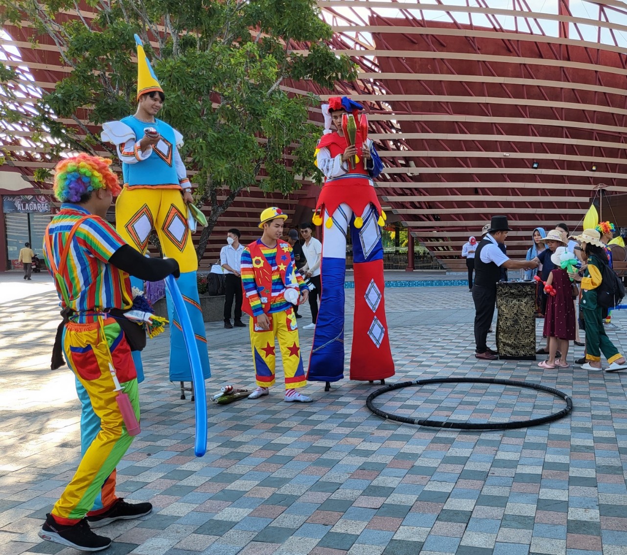 입구에서는 피에로 공연이 이어지고 풍선이 부풀어 오른다. 내 아들은 파란색 칼을 받고 기뻐하며 하루 종일 칼을 휘두르고 있습니다.