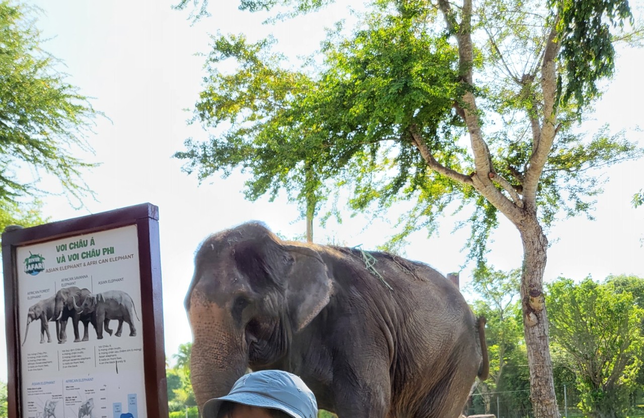 하이라이트는 보트에서 내리고 매우 가까이서 볼 수 있는 기린/코끼리 먹이를 주는 것입니다. 내가 갔을 때(14:30) 기린밥은 품절, 코끼리밥은 30,000동에 팔고 있었다. 코끼리 코에 바로 바나나/대나무/당근을 넣을 수 있는데, 에버랜드 로스트밸리에서 바나나를 강 건너편에 던지는 것과는 차원이 다른 근접성이었다.