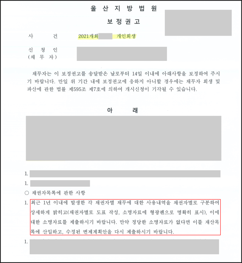 최근에 거액의 차입금으로 인해 개인회생 자문을 받은 경우에는 그 채무를 어디에, 어디서, 어떤 경위로 썼는지 밝히는 것이 타당합니다. 시정명령이나 건의가 끊이지 않는 이유는 제도를 악용해 이익을 챙기려는 누군가가 있기 때문이다. 그만큼 태클하기가 쉽지 않으니 체계적으로 준비하시고 해고당하지 않도록 하나도 놓치지 마세요.