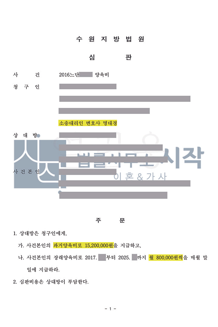 과거양육비청구소송 소장접수 무료상담전화(문자) 010-3711-0745실장 변동현