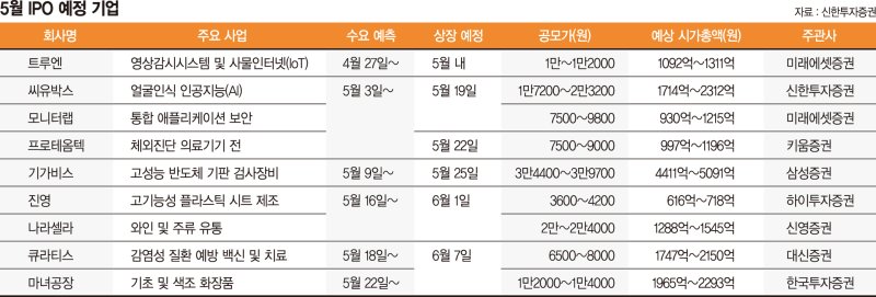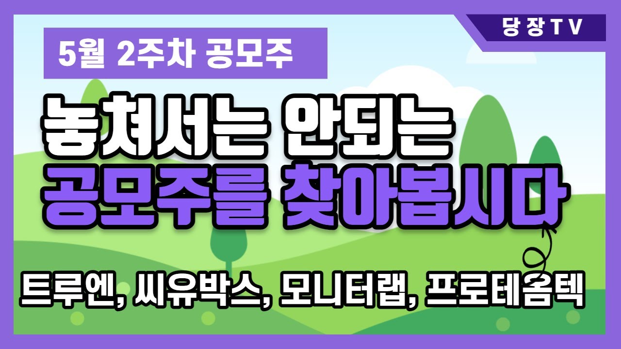 지난 4월부터 공모 건수가 점차 늘고 있다. 4월 구독에 참여하지 못해 아쉽습니다. 5월에는 공모에 적극 참여할 계획이다. 2023년 5월 공모 예정인 트루엔, 큐박스, 모니터랩, 기가비스, 진영, 나라셀라, 큐라티스, 마녀공장. 구독 일정과 회사 정보를 살펴보겠습니다.진짜로